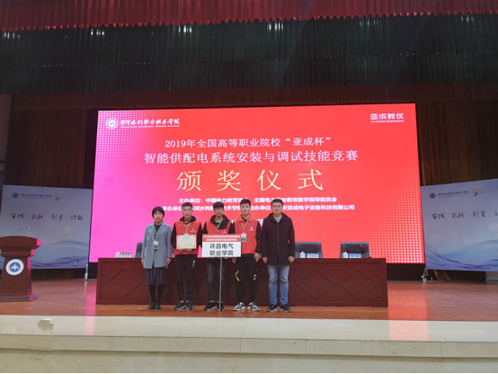 ????11月1日至3日,2019年全國(guó)高等職業(yè)院校學(xué)生“智能供配電系統(tǒng)安裝與調(diào)試技能競(jìng)賽”在黃河水利職業(yè)技術(shù)學(xué)院舉行,來自全國(guó)各省、市、自治區(qū)的51所高職院校代表隊(duì)參加了比賽,由我院電氣工程系學(xué)生佘棟、黃裕山、宋汪洋組成的代表隊(duì)(指導(dǎo)教師:周剛、張賽)榮獲團(tuán)體優(yōu)秀獎(jiǎng)。