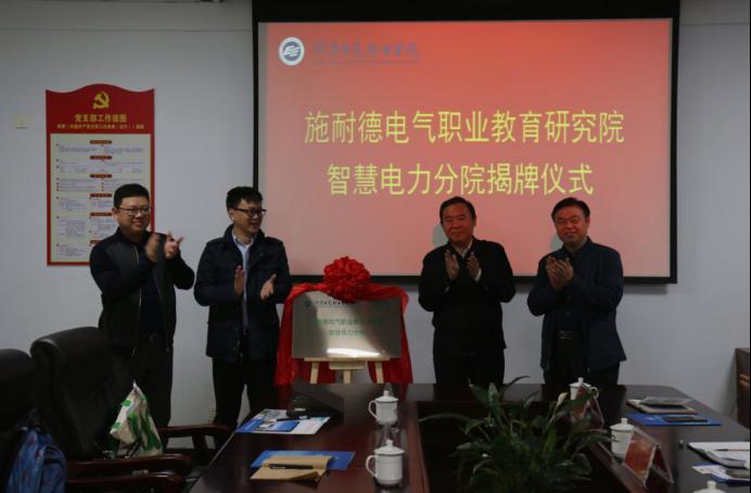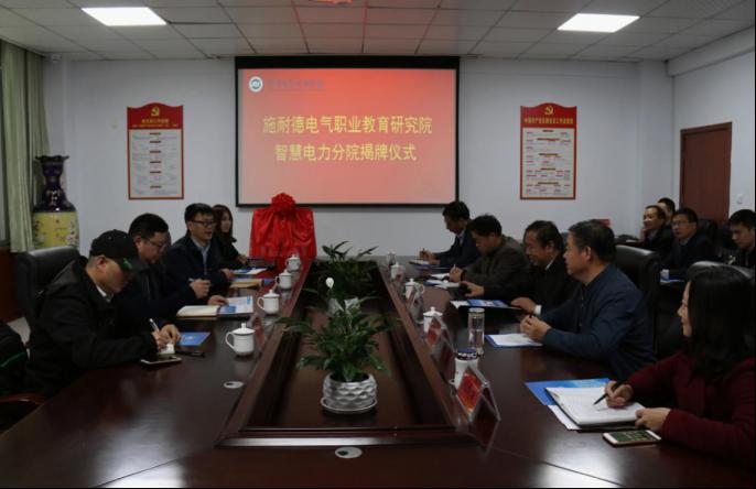 為加快學院電氣專業(yè)現(xiàn)代化發(fā)展,在河南省人力資源社會保障廳——法國施耐德(中國)電氣“碧波計劃”戰(zhàn)略框架引領(lǐng)下,經(jīng)過前期充分對接,11月20日上午,許昌電氣職業(yè)學院與法國施耐德電氣攜手共建的“施耐德電氣職業(yè)教育研究院智慧電力分院”在我院正式揭牌成立。河南省人力資源與社會保障廳職業(yè)能力建設(shè)處主任武化雨,施耐德電氣公司職業(yè)教育項目總監(jiān)梁健、總經(jīng)理楊勇,學院黨委書記楊魯西、院長楊德嶺、副院長馮朝印及辦公室主任胡曉敏、教務(wù)處長朱煥芝等出席揭牌儀式。