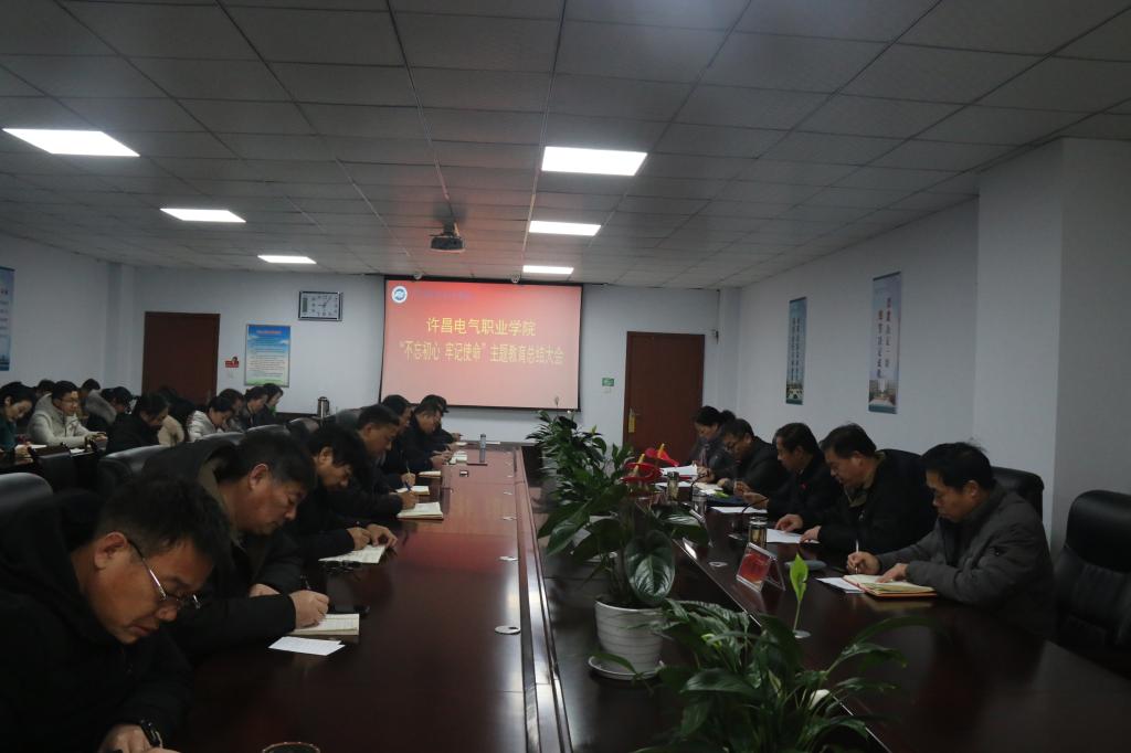 ????楊魯西書記強調(diào),要著力研究建立和推進落實“不忘初心、牢記使命”制度,進一步鞏固和擴大主題教育成果,使“不忘初心、牢記使命”這個黨的建設(shè)的永恒課題、黨員干部的終身課題常抓常新,把推動主題教育成果轉(zhuǎn)化與學(xué)習(xí)貫徹習(xí)近平新時代中國特色社會主義思想結(jié)合起來,與貫徹落實總書記視察河南重要講話精神結(jié)合起來,與貫徹中央、省委、市委決策部署結(jié)合起來,與建設(shè)許昌“智造之都、宜居之城”,完成學(xué)院全年各項目標(biāo)任務(wù)結(jié)合起來,切實把主題教育激發(fā)出的工作熱情轉(zhuǎn)化為推動學(xué)院高質(zhì)量發(fā)展的實際成效。
