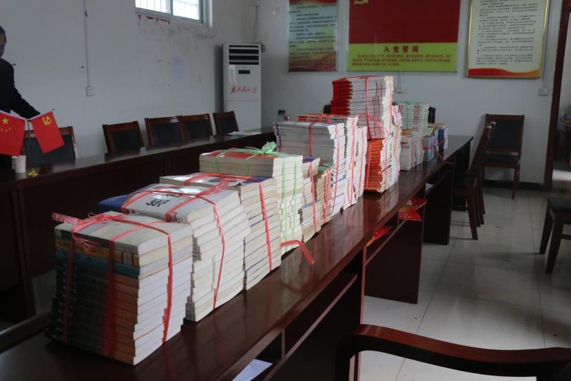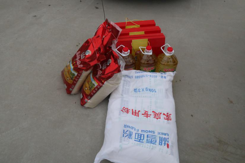 黨委書記楊魯西一行為貧困家庭帶去了生活必需品并向李悅莊村捐贈圖書