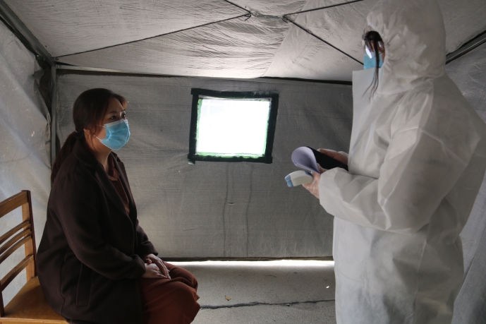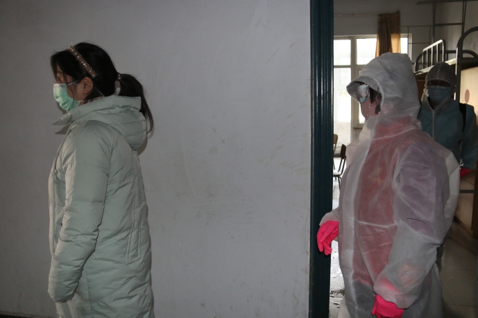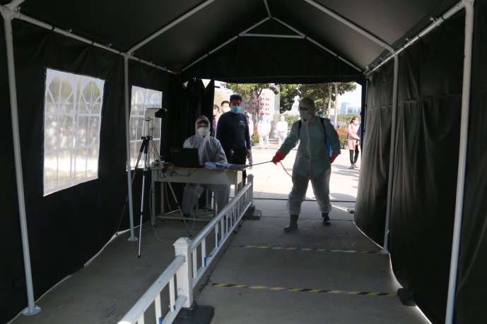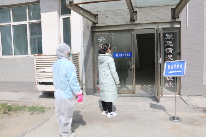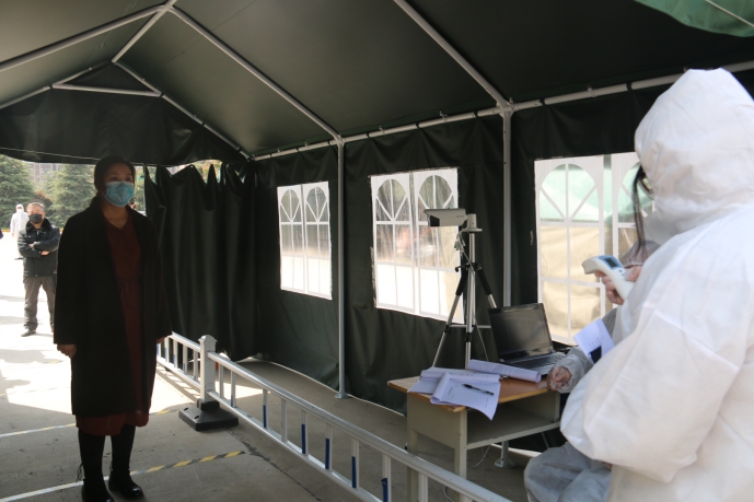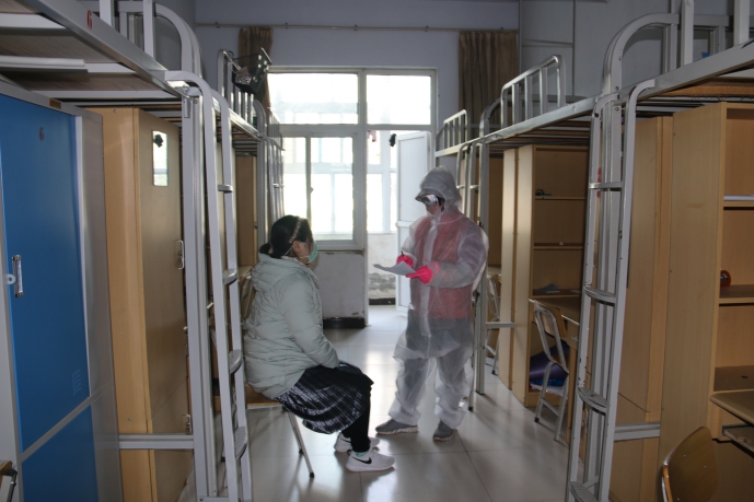 在臨時隔離區(qū)對體溫異常學(xué)生進(jìn)行進(jìn)一步檢測