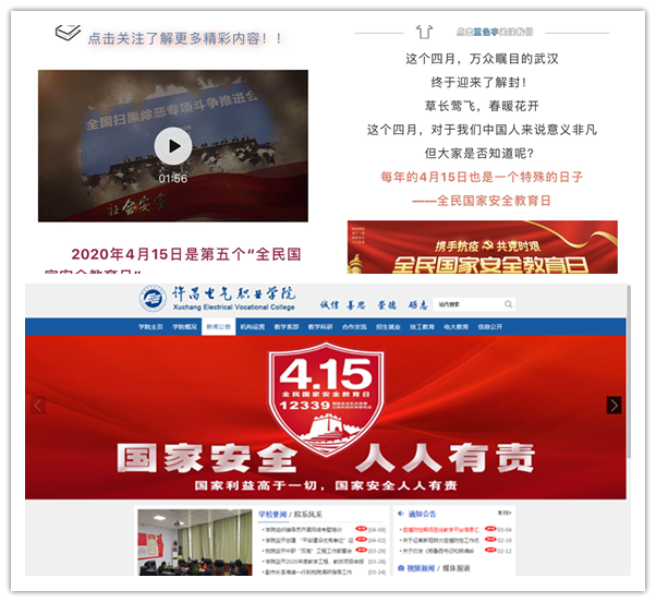 ????我院加大宣傳力度,利用學(xué)院官網(wǎng)、學(xué)院廣播、Led電子屏、宣傳版面,介紹總體國(guó)家安全觀、憲法和國(guó)家安全法、反恐怖主義法、網(wǎng)絡(luò)安全法、核安全法以及涉公共衛(wèi)生安全等法律法規(guī),學(xué)院先鋒許電、院團(tuán)委等多個(gè)微信公眾號(hào)推送了國(guó)家安全教育日相關(guān)內(nèi)容,營(yíng)造了國(guó)家安全人人有責(zé)的良好氛圍。
