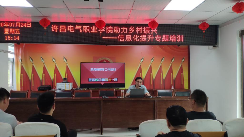 ????7月24日,應(yīng)襄城縣十里鋪鎮(zhèn)黨委政府邀請,我院駐該鎮(zhèn)科技副鎮(zhèn)長姚小禹聯(lián)系信息工程系,由北大青鳥新媒體專家董強(qiáng)召老師開展“信息化提升”專題培訓(xùn)。鎮(zhèn)黨委書記任曉磊、鎮(zhèn)長王永偉帶領(lǐng)全體黨政領(lǐng)導(dǎo)班子和鎮(zhèn)政府全體機(jī)關(guān)干部共同參加培訓(xùn)。