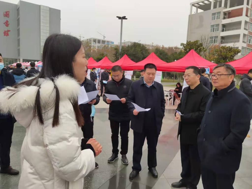 ?????11月28日上午,許昌市人力資源和社會保障局、許昌職業(yè)技術(shù)學(xué)院、許昌電氣職業(yè)學(xué)院聯(lián)合舉辦“許昌市2021屆大中專畢業(yè)生校園招聘會”。人社局副局長梅成亭、吳強以及許昌公共就業(yè)服務(wù)中心書記張明勛、中心主任張金國,我院副院長劉濤在招生就業(yè)處副處長陳武的陪同下到招聘會現(xiàn)場指導(dǎo)工作。