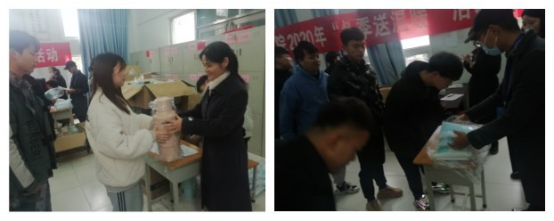 此次“冬季送溫暖”活動,包括向困難家庭學生送棉衣、發(fā)放口罩、暖瓶、生活補貼等。