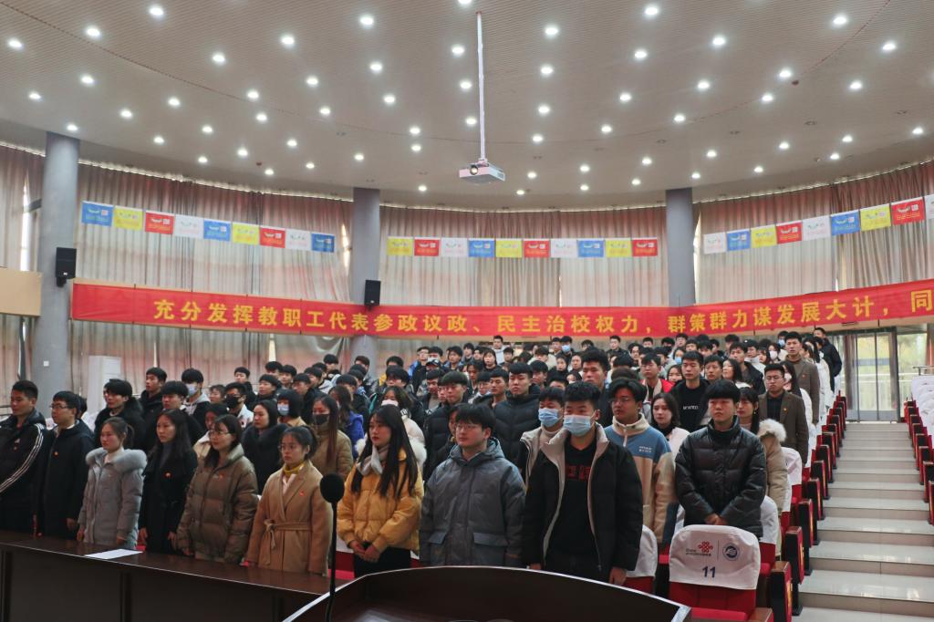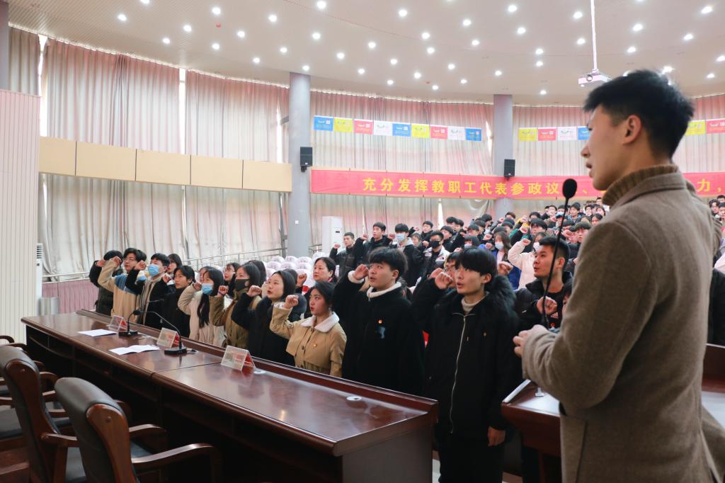 ????本次主題團(tuán)日活動在齊唱國歌中拉開帷幕,紀(jì)委書記張明慧等親自為新團(tuán)員佩戴團(tuán)徽,藝術(shù)系王銳同學(xué)帶領(lǐng)新團(tuán)員在團(tuán)旗下莊嚴(yán)宣誓,表明了加入共青團(tuán)做合格共青團(tuán)員的決心。藝術(shù)系蔡祺凡同學(xué)做新團(tuán)員代表上臺發(fā)言,向團(tuán)組織表明決心,立志刻苦勤奮,以身作則,做一名合格的共青團(tuán)員。機(jī)電工程系張帥同學(xué)做老團(tuán)員代表發(fā)言,對新團(tuán)員們的加入表示歡迎,為新團(tuán)員們講述了在共青團(tuán)這個組織收獲成長的歷程以及如何踐行團(tuán)員的先鋒隊使命,鼓勵新團(tuán)員積極參與共青團(tuán)活動,讓新團(tuán)員更加明確了自己肩上的責(zé)任與使命,并號召全體同學(xué)要在思想和行動上入團(tuán)、時刻保持共青團(tuán)員的先進(jìn)性。