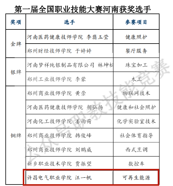 我院汪一帆同學(xué)榮獲中華人民共和國(guó)第一屆職業(yè)技能大賽可再生能源項(xiàng)目第三名!