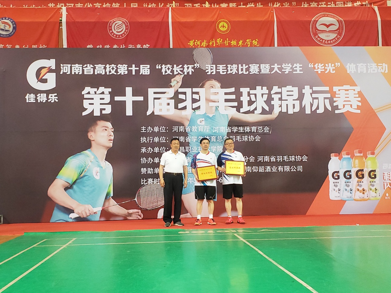 5月28日,河南省高校第十屆“校長杯”羽毛球比賽在許昌職業(yè)技術(shù)學院體育館舉行。我院副院長劉濤與來自全省28所高校的校長競技角逐,經(jīng)過激烈比拼,最終在全省28所高校中脫穎而出,獲得全省亞軍。同時劉院長連戰(zhàn)七場,在雙腿抽筋的情況下依然堅持比賽奮勇拼搏,充分展現(xiàn)了我院艱苦奮斗,不畏強敵,奮勇拼搏的許電精神,獲大賽最佳拼搏獎。