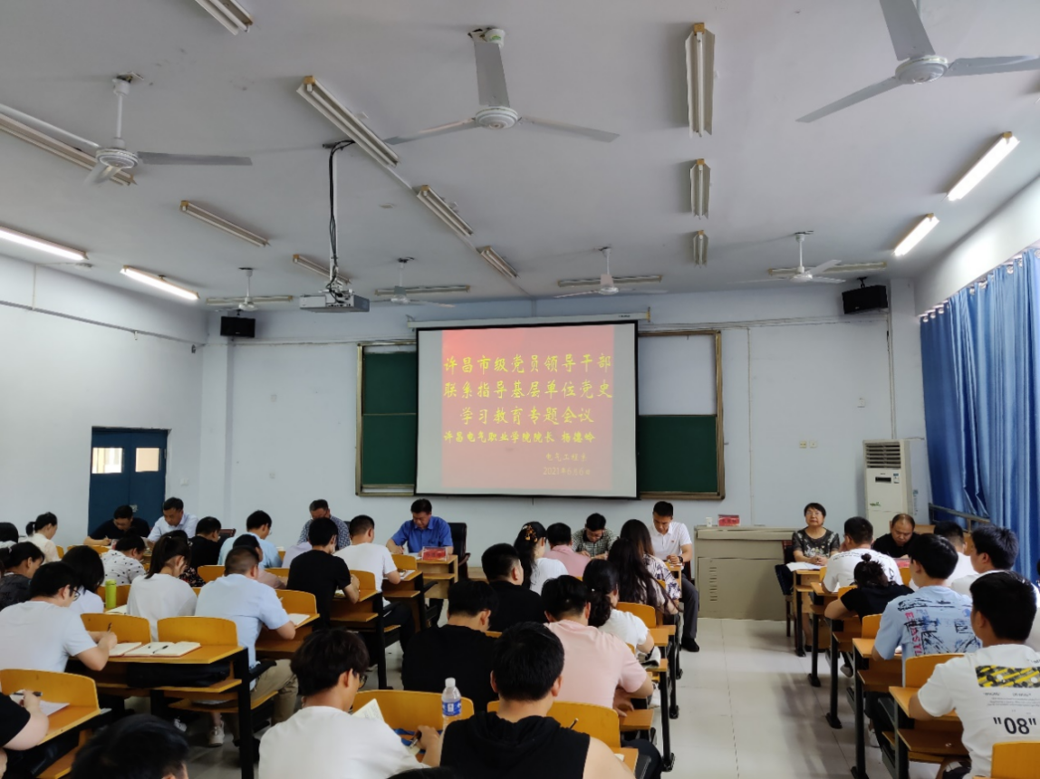 為貫徹中共許昌市委黨史學(xué)習(xí)教育領(lǐng)導(dǎo)小組辦公室《關(guān)于市級黨員領(lǐng)導(dǎo)干部聯(lián)系指導(dǎo)基層單位和黨史學(xué)習(xí)教育的通知》精神,進一步推動黨史學(xué)習(xí)教育走深走實,許昌電氣職業(yè)學(xué)院院長楊德嶺同志一行于近日到所聯(lián)系多個單位開展調(diào)研,指導(dǎo)黨史學(xué)習(xí)教育工作。