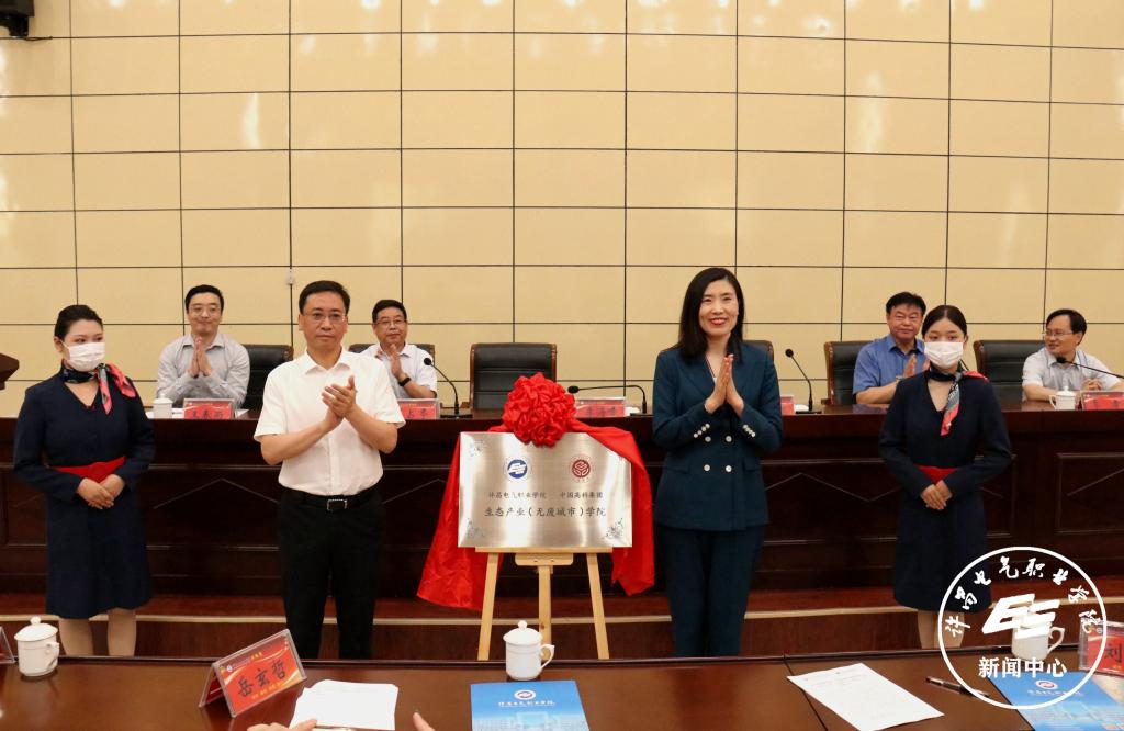 隨后,在現(xiàn)場師生代表的共同見證下,許昌市人民政府副市長李海峰與中國高科集團(tuán)總裁朱怡然共同為生態(tài)產(chǎn)業(yè)(無廢城市)學(xué)院揭牌。