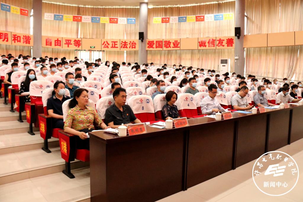6月17日上午,許昌電氣職業(yè)學(xué)院生態(tài)產(chǎn)業(yè)(無廢城市)學(xué)院成立大會(huì)在學(xué)院二期第二報(bào)告廳舉行。許昌市人民政府副市長李海峰,中國高科集團(tuán)總裁朱怡然,許昌市人民政府辦公室四級(jí)調(diào)研員李孝,中國高科集團(tuán)運(yùn)營中心總經(jīng)理王春雨等嘉賓受邀出席活動(dòng),學(xué)院黨委書記彭占亭,副院長 商淑敏、劉濤、馮朝印,黨委委員、工會(huì)主席張勇,黨委委員、紀(jì)委書記張明慧,學(xué)院相關(guān)部門負(fù)責(zé)人、系部師生代表350余人參加此次活動(dòng)。活動(dòng)由學(xué)院院長楊德嶺主持。