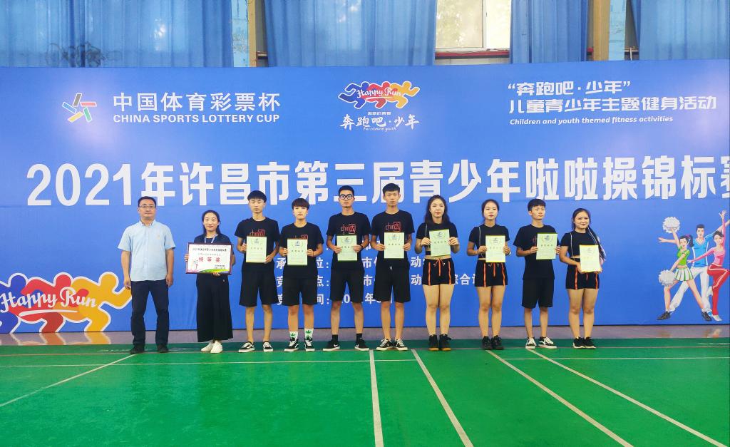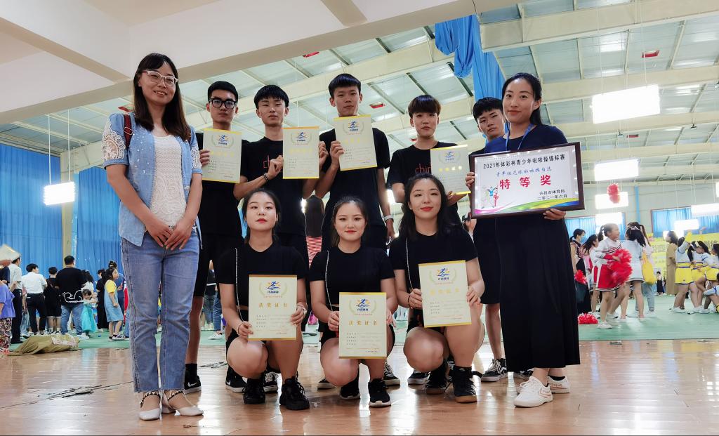 6月19日在2021年許昌市“中國(guó)體育彩票杯”第三屆青少年啦啦操錦標(biāo)賽中,許昌電氣職業(yè)學(xué)院啦啦隊(duì)榮獲公開(kāi)大學(xué)組花球自選套路比賽特等獎(jiǎng)!