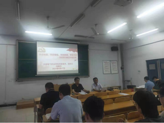 為落實中央、省委、市委、學院黨史學習統(tǒng)一部署,根據(jù)《中共許昌電氣職業(yè)學院委員會黨史學習教育臺賬》的工作安排,6月17日下午,副院長馮朝印圍繞“學史明理、學史增信、學史崇德、學史力行”四個方面,與機電工程系黨總支全體黨員進行了交流學習,為機電工程系黨總支全體黨員講授了一堂生動的黨課,參與聆聽黨課的黨員受益匪淺。
