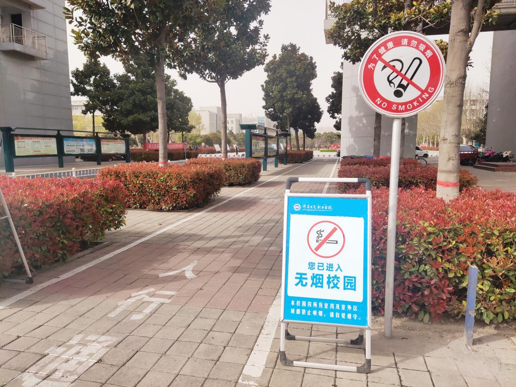 在創(chuàng)建過程中,學(xué)院嚴(yán)格規(guī)定了校園內(nèi)的無煙場所,包括校園內(nèi)所有公共區(qū)域,還包括教職工辦公室、會議室、圖書館、學(xué)生宿舍、餐廳、教室、實訓(xùn)室等室內(nèi)場所,不準(zhǔn)擺放香煙、煙具,禁止在校園內(nèi)吸游煙,保護(hù)不吸煙人群不受二手煙危害。學(xué)院在全校各禁煙場所設(shè)置禁煙標(biāo)志,室外主要場所設(shè)置“吸煙有害健康”、“遠(yuǎn)離吸煙,珍愛生命”等宣傳提醒標(biāo)識。
