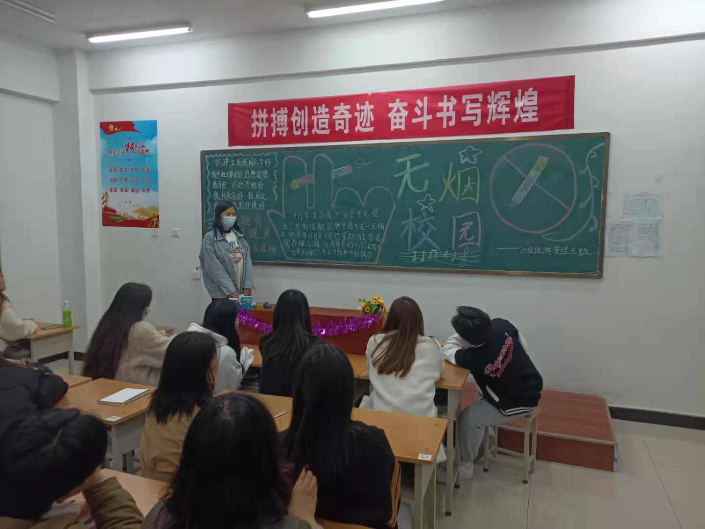 此外,學(xué)院還采取多種方式對教師和學(xué)生進(jìn)行禁煙檢查。在新生入學(xué)、世界無煙日等重要時間節(jié)點,利用課堂、主題黨團(tuán)、講座等形式對師生開展禁煙教育,講透吸煙危害、普及醫(yī)學(xué)知識、鼓勵吸煙師生戒煙、拒絕二手煙,使遠(yuǎn)離煙草成為師生員工的自覺行為,共同創(chuàng)造良好的校園無煙環(huán)境。