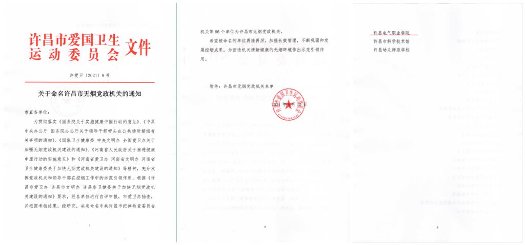 日前,許昌市愛國衛(wèi)生運(yùn)動委員會印發(fā)了《關(guān)于命名許昌市無煙黨政機(jī)關(guān)的通知》,我院獲評許昌市無煙黨政機(jī)關(guān)。