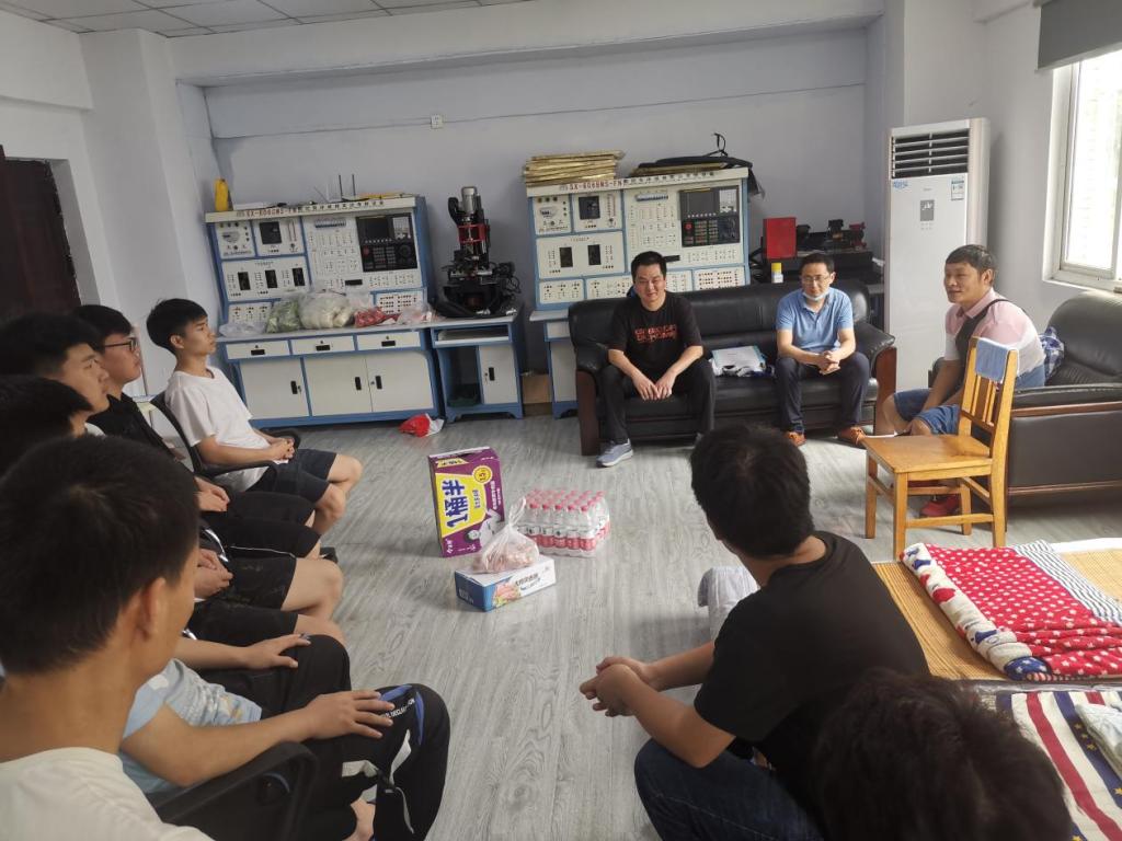 為鼓舞競(jìng)賽選手士氣,做好下半年相關(guān)賽事賽前訓(xùn)練、備賽和參賽工作,2021年7月22日上午,副院長(zhǎng)馮朝印、機(jī)電系主任張紅凱前往一期實(shí)訓(xùn)樓看望機(jī)電工程系7名假期留校備賽選手。