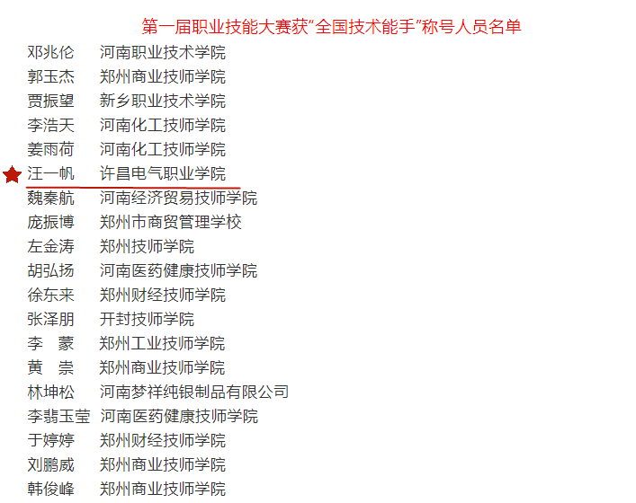 本次人社部授予在第45屆世界技能大賽、中華人民共和國第一屆職業(yè)技能大賽、2019—2020年度各類職業(yè)技能競賽中取得優(yōu)異成績的選手授予“全國技術(shù)能手”稱號,旨在深入貫徹落實習(xí)近平總書記對技能人才工作重要指示精神和黨的十九屆五中全會精神,進(jìn)一步發(fā)揮職業(yè)技能競賽在技能人才工作中的重要作用,加強高技能人才隊伍建設(shè),大力弘揚勞模精神、勞動精神、工匠精神。據(jù)悉,共有426名在第一屆職業(yè)技能大賽取得優(yōu)異成績的選手獲此榮譽,其中有19名河南選手,汪一帆為許昌市唯一獲此殊榮的選手。