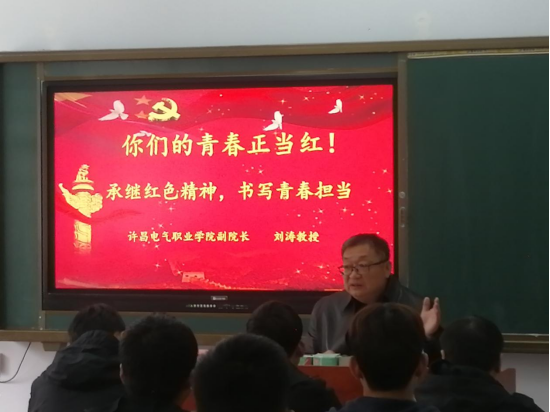 10月20日,副院長劉濤深入教學(xué)一線,走入課堂,以“你們的青春正當(dāng)紅——承繼紅色精神 書寫青春擔(dān)當(dāng)”為題,為電氣工程系2020級中德班學(xué)生講授開學(xué)第一節(jié)思政課。