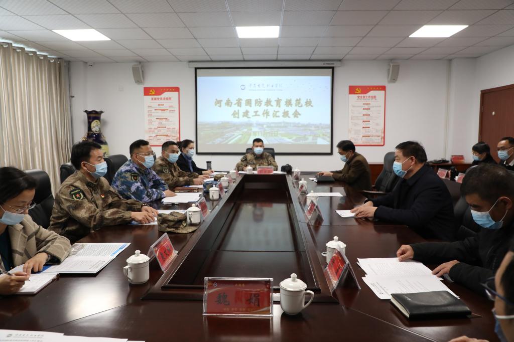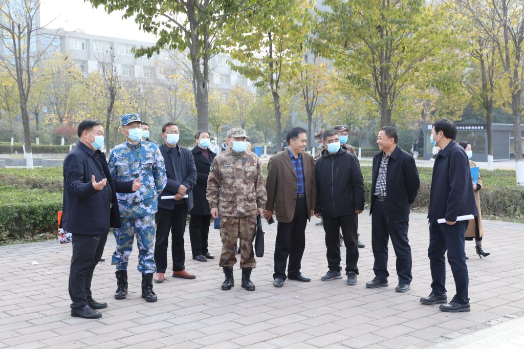 11月16日下午,許昌軍分區(qū)副司令員李聚國帶領(lǐng)考核驗(yàn)收小組一行七人到我院驗(yàn)收指導(dǎo)“河南省國防教育模范高校”創(chuàng)建工作。學(xué)院在第二會(huì)議室舉行了匯報(bào)會(huì),匯報(bào)會(huì)由學(xué)院院長楊德嶺主持,學(xué)院副院長馮朝印、工會(huì)主席張勇及有關(guān)處室第一負(fù)責(zé)人出席并陪同檢查驗(yàn)收。