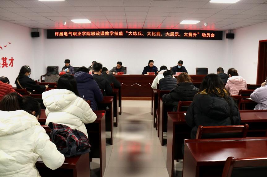馮朝印提出,為確保我院思政課“大練兵”活動(dòng)取得實(shí)效,要做到以下幾點(diǎn)要求。一是提高認(rèn)識(shí),高度重視。本次活動(dòng)不僅是對(duì)思政課教學(xué)效果的檢驗(yàn),同時(shí)也是對(duì)其他各類教育活動(dòng)的展示和評(píng)價(jià)。二是認(rèn)真研學(xué),吃透內(nèi)涵。全體思政課教師要結(jié)合本次“大練兵”活動(dòng),結(jié)合學(xué)生實(shí)際、授課內(nèi)容及教師自身特點(diǎn),凝練出新教法。從師、教、研、踐、學(xué)、考等幾方面考量思政課教學(xué)實(shí)效。三是精心組織,確保成效。思政部要提高政治站位,積極動(dòng)員、周密組織,確保人人有收獲,人人有提高。要通過此次活動(dòng)對(duì)標(biāo)先進(jìn),強(qiáng)弱項(xiàng)補(bǔ)短板,展示思政課教學(xué)成果及教師風(fēng)采,打造思政“金課”,使思政課成為學(xué)生真心喜愛、終身受益的課程。四是活動(dòng)載體,推動(dòng)工作。以此次思想政治理論課教學(xué)技能“大練兵、大比武、大展示、大提升”活動(dòng)為契機(jī),進(jìn)一步增強(qiáng)思政課教師的歷史責(zé)任感,對(duì)標(biāo)“六要”要求自己,對(duì)照“八個(gè)相統(tǒng)一”切實(shí)提高思政課教學(xué)水平和教學(xué)質(zhì)量。