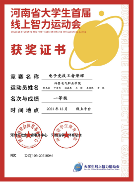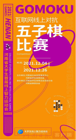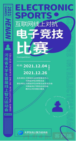 由河南省社會體育事務中心, 河南省學生體育總會舉辦的2021年“河南省大學生首屆線上智力運動會”在2021年12月份舉行,該賽事項目共設圍棋、象棋、橋牌、五子棋、電子競技5個單項。5個項目共100余所高校,近14000名學子報名參賽。