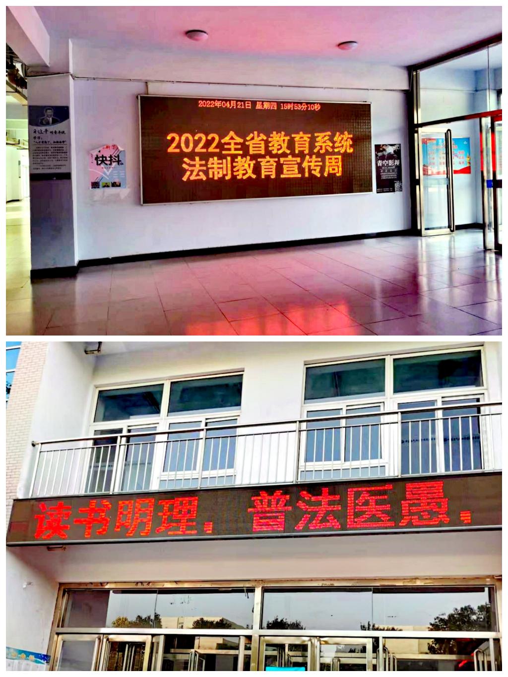 學(xué)校制訂“普法教育宣傳周”活動(dòng)方案,通過在教學(xué)樓、辦公室樓等處電子屏播放關(guān)于普法宣傳標(biāo)語,在學(xué)院內(nèi)放置宣傳版面營造活動(dòng)氛圍。