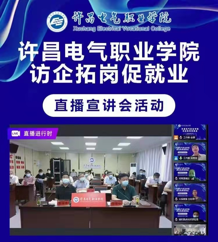 為貫徹落實教育部2022年高校畢業(yè)生“百日沖刺”活動部署的具體行動,全面深化校企合作,實現(xiàn)校企供需對接,6月14日,學(xué)院開展“訪企拓崗云端行 直播薦才促就業(yè)”許昌電氣職業(yè)學(xué)院書記校長訪企拓崗促就業(yè)直播專項行動。院黨委書記彭占亭,院長楊德嶺,副院長劉濤,黨委辦公室、院長辦公室、招生就業(yè)處、各系負(fù)責(zé)人及相關(guān)工作人員參加會議。