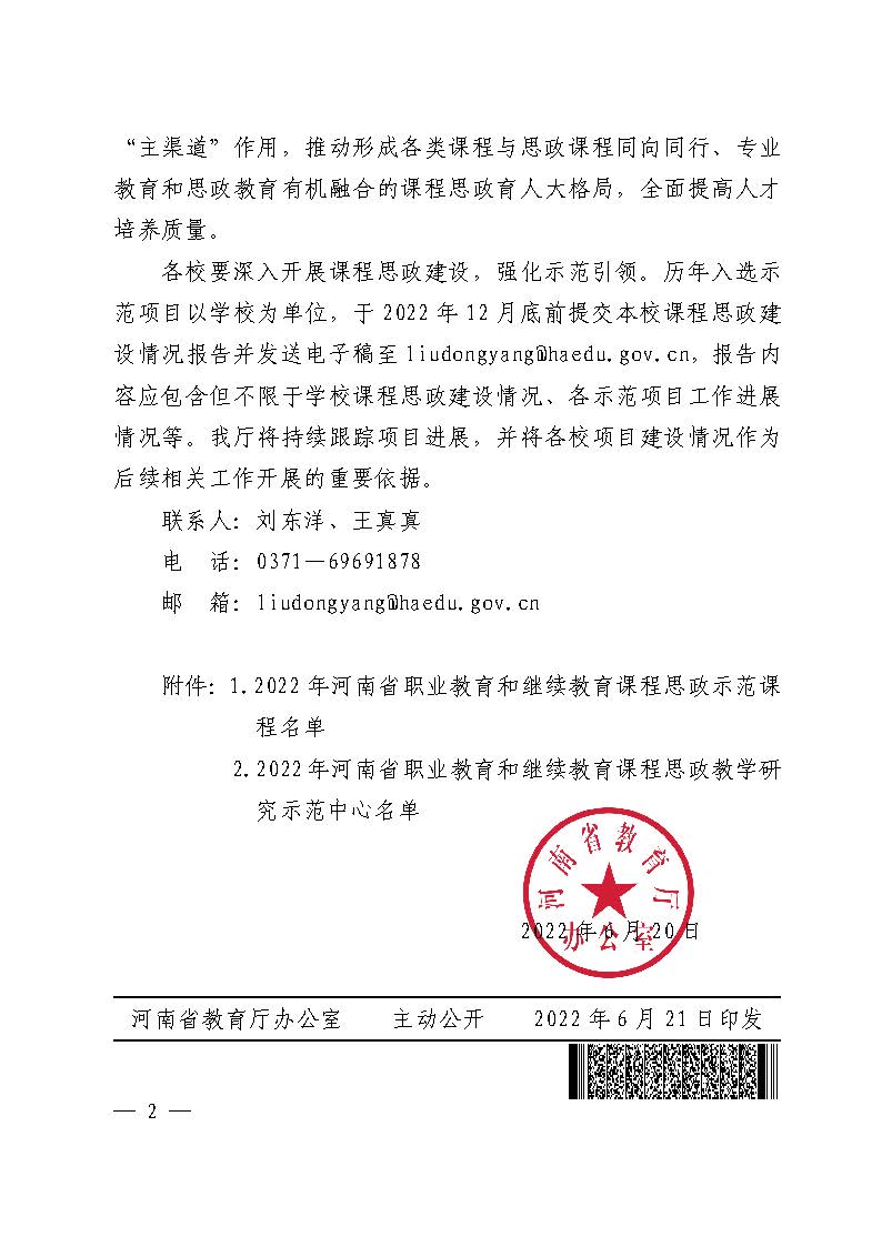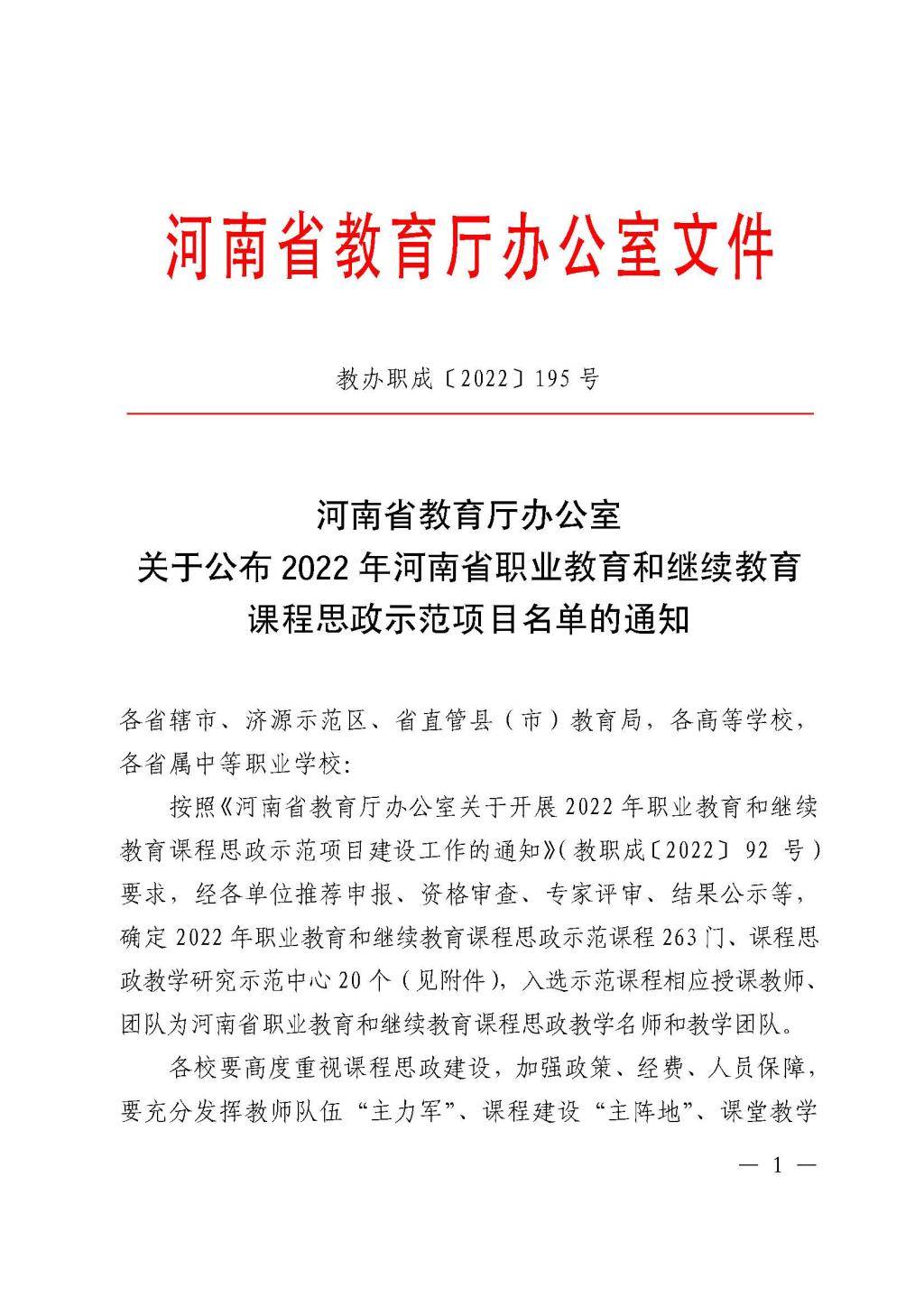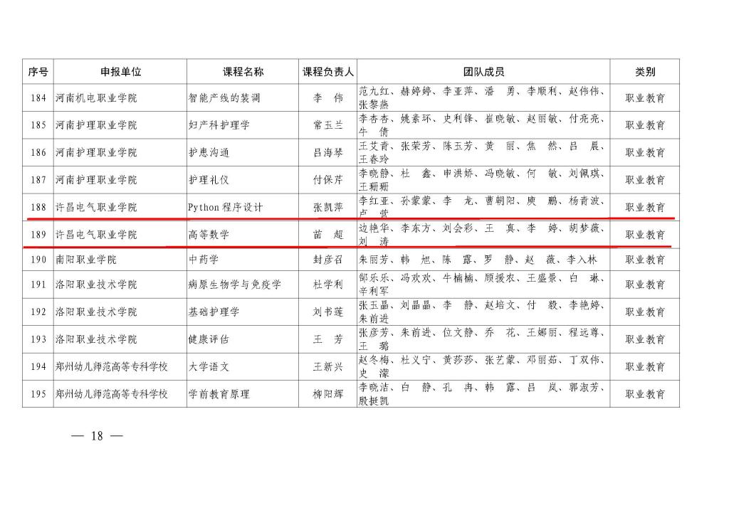 近日,河南省教育廳下發(fā)了《關(guān)于公布2022年河南省職業(yè)教育和繼續(xù)教育課程思政示范項目名單的通知》(教職成[2022]195號),認(rèn)定我院課程思政教學(xué)研究中心為省級課程思政教學(xué)研究示范中心,認(rèn)定《Python程序設(shè)計》、《高等數(shù)學(xué)》、《婚姻家庭法》三門課程為省級職業(yè)教育和繼續(xù)教育課程思政示范課程,入選示范課程相應(yīng)授課教師、團(tuán)隊為河南省職業(yè)教育和繼續(xù)教育課程思政教學(xué)名師和教學(xué)團(tuán)隊。