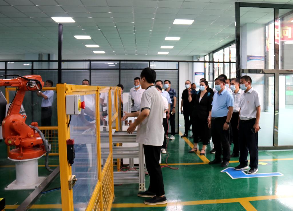為學(xué)習(xí)貫徹落實(shí)全省職業(yè)教育大會精神,全面提升全市職業(yè)教育發(fā)展水平,不斷提高全市職業(yè)學(xué)校辦學(xué)質(zhì)量,市教育局研究組織全市職業(yè)院校主要領(lǐng)導(dǎo)巡回觀摩活動。8月4日上午,市教育局副局長楊文超帶領(lǐng)觀摩團(tuán)一行首站來到我院進(jìn)行觀摩交流。院長楊德嶺,副院長馮朝印,院辦、教務(wù)處、設(shè)備與實(shí)訓(xùn)管理中心、電氣工程系、機(jī)電工程系等部門負(fù)責(zé)人陪同觀摩活動。