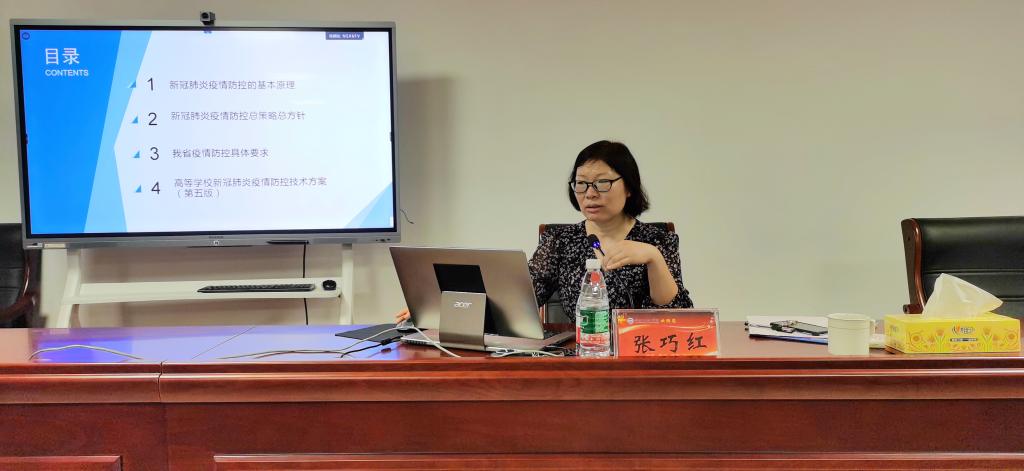 張巧紅科長(zhǎng)結(jié)合自己多年來(lái)在流行病防治工作中的專(zhuān)業(yè)實(shí)踐和疫情防控一線(xiàn)工作的實(shí)戰(zhàn)經(jīng)驗(yàn),深入淺出地為大家講解流行病、傳染病防治的科普知識(shí)和新冠肺炎疫情防控的基本原理,分析當(dāng)前疫情防控形勢(shì),詳細(xì)解讀國(guó)家新冠肺炎疫情防控總策略總方針和省、市疫情防控的具體要求及工作規(guī)范,重點(diǎn)解讀了《高等學(xué)校新冠肺炎疫情防控技術(shù)方案(第五版)》。