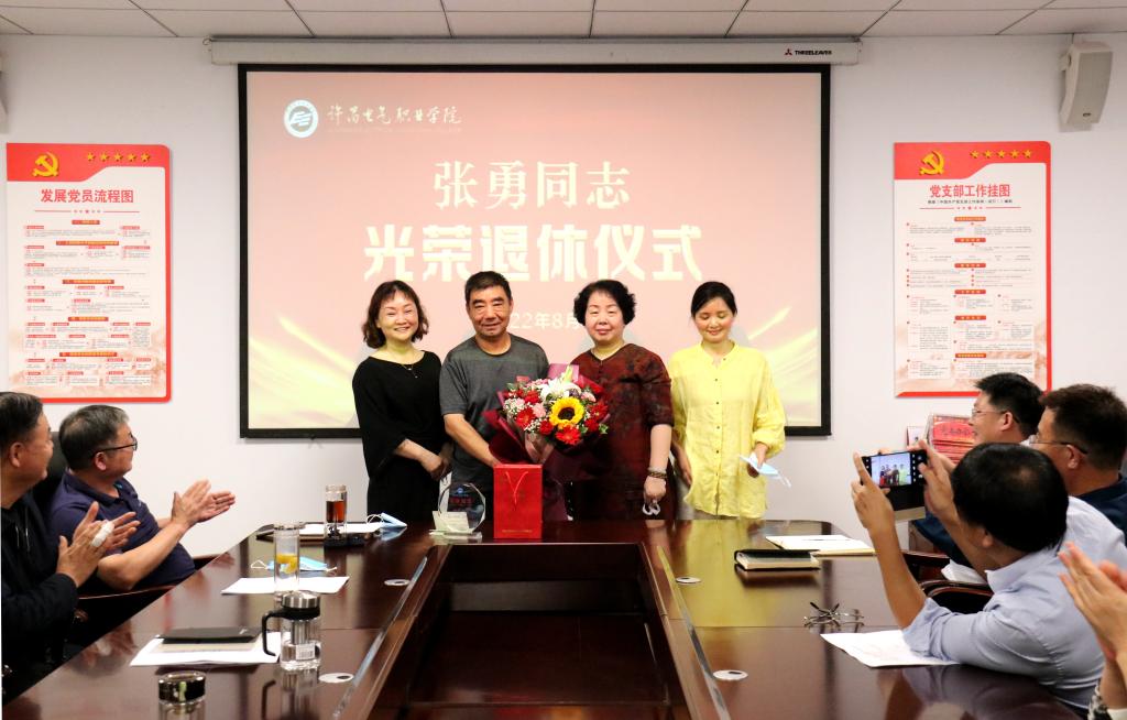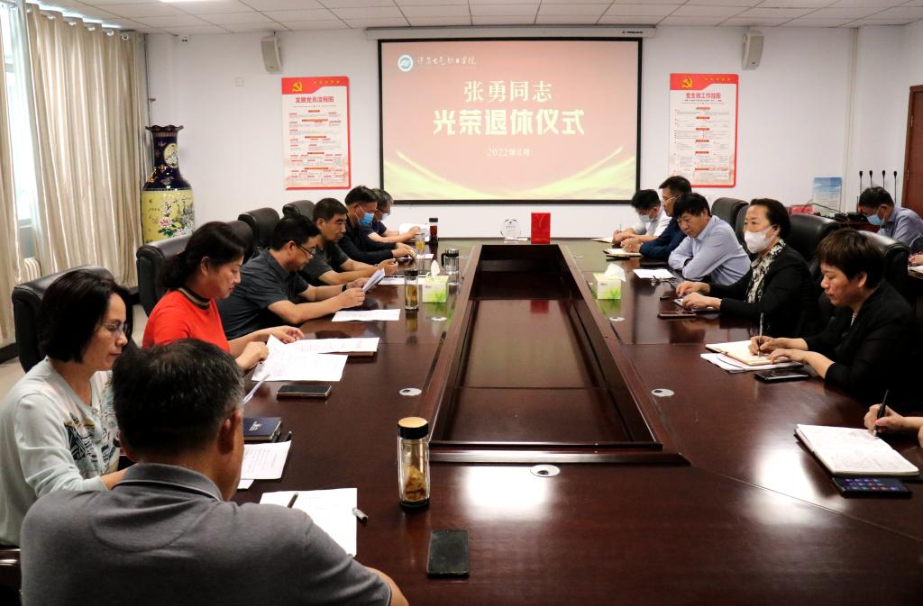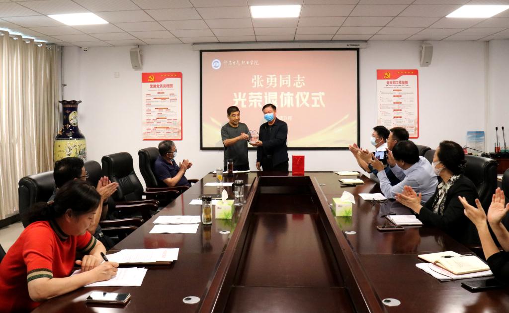 為進一步體現(xiàn)黨內(nèi)關懷,切實增強干部退休的政治榮譽感、組織歸屬感、退休儀式感,8月31日,我院在行政樓第二會議室舉行黨委委員、工會主席張勇同志光榮退休儀式,學院領導班子成員,黨辦、院辦、組織部、人事處、保衛(wèi)處、后勤處、信息系、后勤服務中心負責人,工會全體人員參加儀式。儀式由副院長商淑敏主持。