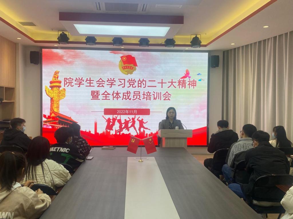 11月4日,院團委組織學(xué)生會開展了學(xué)習(xí)黨的二十大精神暨全體成員培訓(xùn)會。團委副書記、院學(xué)生會指導(dǎo)老師丁姝同志帶領(lǐng)學(xué)生會全體成員學(xué)習(xí)了黨的二十大報告部分內(nèi)容并指出,學(xué)習(xí)好、宣傳好、貫徹好黨的二十大精神,是當(dāng)前和今后一個時期的首要政治任務(wù),各部門要以這次學(xué)習(xí)培訓(xùn)為契機,整體把握、突出重點、抓住關(guān)鍵,開展分組學(xué)習(xí)、研討交流、撰寫心得等活動,堅持用黨的二十大精神統(tǒng)一思想、統(tǒng)攬工作。培訓(xùn)會上,丁老師希望學(xué)生會工作人員找準(zhǔn)定位,做好“四要求三步驟”:信念要有力度、思考要有深度、處事要有溫度、成績要有亮度四個要求;事前認(rèn)真思考、事中集中精力、事后總結(jié)問題三個步驟,不斷加強自身修養(yǎng),秉承初心,打造緊跟黨走在前列的先進學(xué)生組織,更好地服務(wù)青年學(xué)生成長成才。