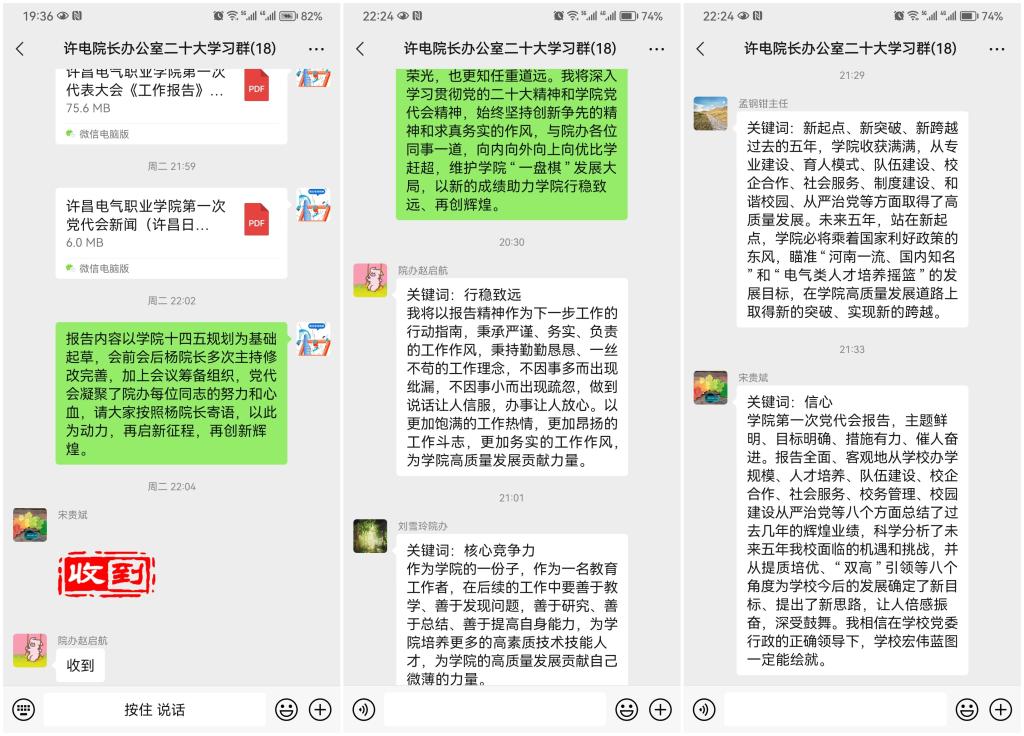 師生們紛紛表示,要把學(xué)習(xí)宣傳貫徹好第一次黨代會(huì)精神作為當(dāng)前和今后一段時(shí)期學(xué)院的一項(xiàng)重大政治任務(wù)時(shí),注重加強(qiáng)與學(xué)習(xí)貫徹黨的二十大精神相結(jié)合、與學(xué)習(xí)貫徹習(xí)近平總書記關(guān)于職業(yè)教育的重要論述相結(jié)合,高質(zhì)量推動(dòng)黨代會(huì)目標(biāo)任務(wù)落實(shí)落地、取得實(shí)效,奮力譜寫新時(shí)代許電院發(fā)展新篇章。