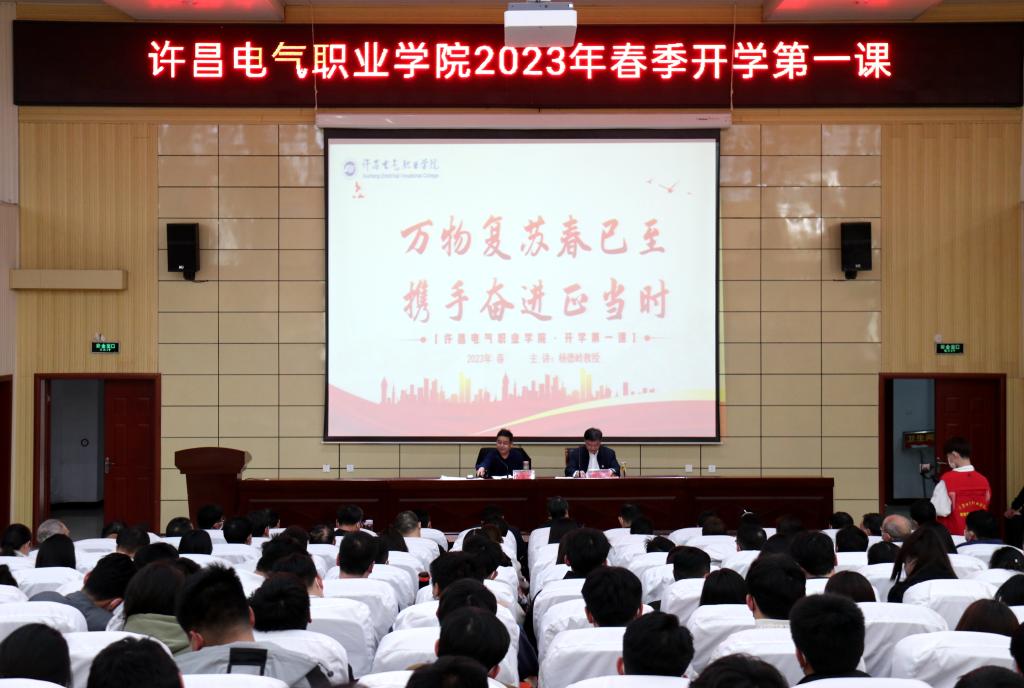 楊德嶺圍繞學(xué)習(xí)貫徹黨的二十大精神和習(xí)近平總書記重要講話精神,回顧了過去三年黨和國家全面統(tǒng)籌疫情防控和現(xiàn)代化職業(yè)教育建設(shè)所取得的重大成就,號召全體師生用更強(qiáng)的實力,更深的底氣,更好的斗志,去迎接接下來新的學(xué)期、新的生活、新的世界。他指出,2023年是全面貫徹落實黨的二十大精神的開局之年,是國家實施“十四五”規(guī)劃承上啟下的關(guān)鍵一年,也是學(xué)院各項工作進(jìn)入高質(zhì)量發(fā)展新征程的啟程之年,全體教職員工要緊緊圍繞建成富有區(qū)域特色、具有全省影響力、競爭力的國家“雙高”職業(yè)院校和許昌電氣工程職業(yè)大學(xué)的宏偉目標(biāo),深入學(xué)習(xí),把握規(guī)律,問題導(dǎo)向,系統(tǒng)思維,用好“改革創(chuàng)新”這一法寶,守正篤行,久久為功,鍛長項、補(bǔ)短板,“干”字當(dāng)頭、“創(chuàng)”字為要,努力把奮斗目標(biāo)、宏偉藍(lán)圖變?yōu)槊篮矛F(xiàn)實。