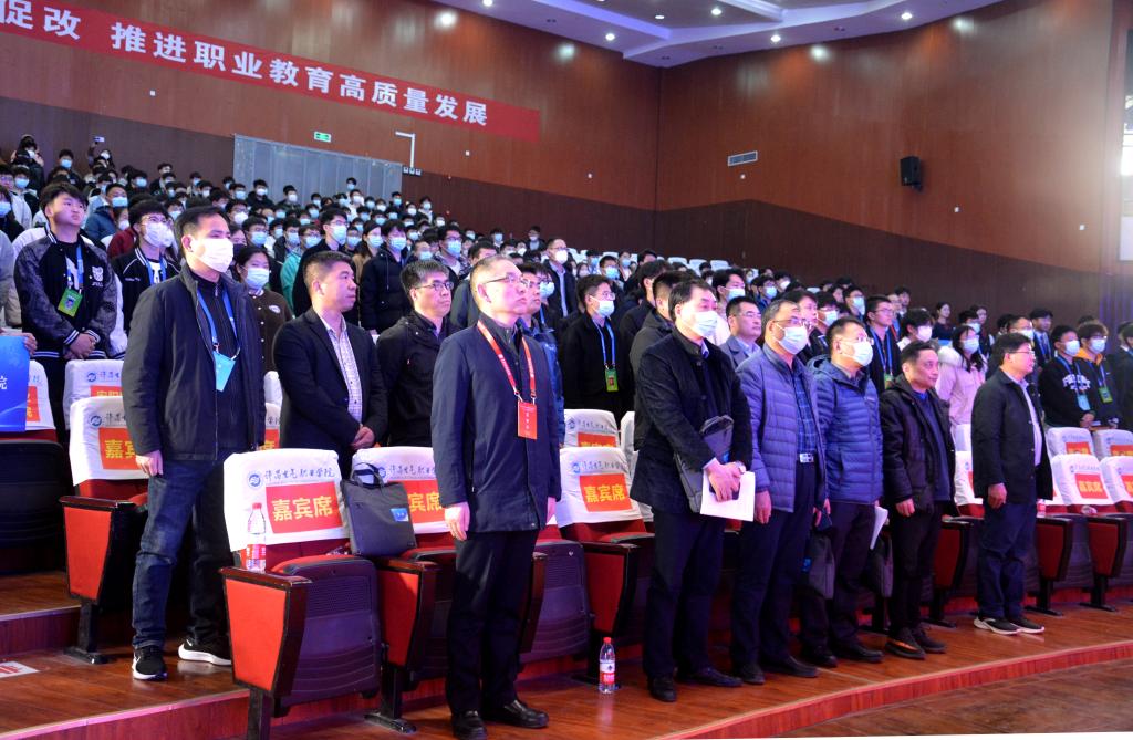 開幕式在莊嚴(yán)的國歌聲中拉開序幕,楊德嶺致歡迎詞,向蒞臨大賽的各位來賓、媒體朋友致以誠摯的謝意,向參賽隊(duì)的指導(dǎo)老師、選手致以親切問候,并預(yù)祝預(yù)祝各位選手取得優(yōu)異成績。楊德嶺指出,此次大賽落地我院,是我院貫徹黨中央建設(shè)職業(yè)教育強(qiáng)國、奮力書寫出彩職業(yè)教育的一筆,也是我院承辦省賽能力的一次檢驗(yàn),我們有決心、有信心把本次大賽辦好,為全省職業(yè)技能競賽工作打造品牌,為“人人持證、技能河南”工程打造許昌品牌。