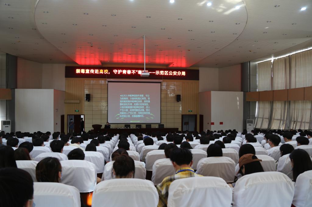 為進一步增強學(xué)生的法制觀念和識毒、防毒、拒毒意識,提高師生防范毒品侵害的能力。 近日,學(xué)院保衛(wèi)處邀請許昌市公安局示范區(qū)公安分局鄭丹警官在學(xué)院第二報告廳組織了“禁毒宣傳進高校,守護青春不‘毒’行”專題毒品預(yù)防教育講座。講座活動由保衛(wèi)處處長楊紹業(yè)主持,來自各系的輔導(dǎo)員及學(xué)生代表共三百余人聆聽講座。