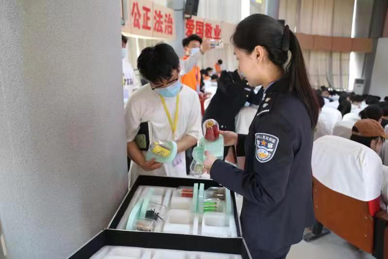 講座現(xiàn)場,師生們輪番傳看了仿真毒品樣本,進一步增強了同學(xué)們“遠(yuǎn)離毒品、珍愛生命”的禁毒意識和防毒拒毒能力。