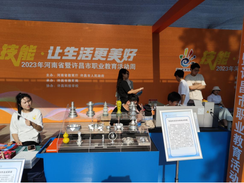 在啟動(dòng)儀式結(jié)束后的職業(yè)教育成果展示環(huán)節(jié),在我院設(shè)備處的組織下,教務(wù)處的協(xié)調(diào)服務(wù)下,我院師生團(tuán)隊(duì)主要通過(guò)展板、展品、操作互動(dòng)等形式展示了我校辦學(xué)特色,重點(diǎn)展示了藝術(shù)系教師白鴿團(tuán)隊(duì)的黏土手工制作、美甲造型等成果展示及現(xiàn)場(chǎng)手部護(hù)理,機(jī)電系教師樊偉、朱哲煜團(tuán)隊(duì)的安全氣囊實(shí)訓(xùn)臺(tái)及智能制造實(shí)訓(xùn)基地成果展,信息工程系教師曹朝陽(yáng)團(tuán)隊(duì)的物聯(lián)網(wǎng)智能家居實(shí)訓(xùn)系統(tǒng),吸引了眾多與會(huì)領(lǐng)導(dǎo)、嘉賓及現(xiàn)場(chǎng)觀眾的觀看、咨詢、體驗(yàn),向公眾展示了我校的品牌特色項(xiàng)目及教育教學(xué)成果。