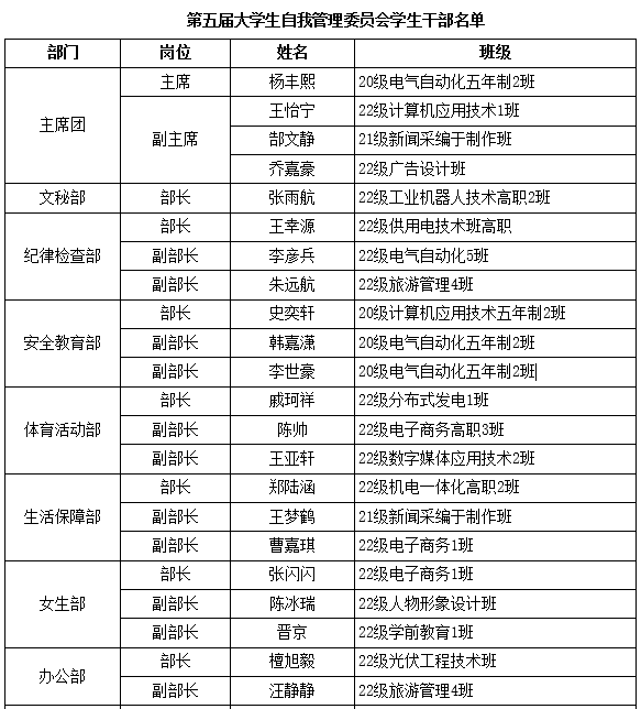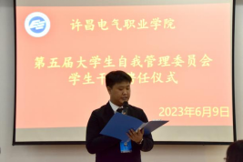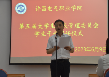 6月9日,學(xué)院第五屆大學(xué)生自我管理委員會(huì)學(xué)生干部聘任儀式在B教學(xué)樓111教室舉行。副院長朱東煜,學(xué)生處處長楊紅培,學(xué)生處副處長黃聰,機(jī)電工程系副主任王會(huì)峰,電氣工程系副書記杜瑞濤,藝術(shù)系團(tuán)總支書記白鴿,機(jī)電工程系團(tuán)總支書記程文浩,經(jīng)濟(jì)管理系團(tuán)總支書記孫妍哲,學(xué)生處學(xué)生管理科科長、院自管會(huì)指導(dǎo)老師卜偉松,以及各系輔導(dǎo)員老師代表出席了本次活動(dòng)。