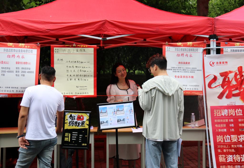 本次招聘會(huì)采用線上線下相結(jié)合的方式,共吸引了許昌鈉日電子有限公司、梁氏酒店管理有限公司、許昌智能繼電器股份有限公司、許昌施普雷特節(jié)能科技有限公司等152家有需求的各類名優(yōu)企業(yè)到場(chǎng),將提供7126個(gè)崗位,涵蓋了加工制造、計(jì)算機(jī)、汽車、商務(wù)服務(wù)等多個(gè)領(lǐng)域,崗位類別覆蓋廣,與學(xué)院畢業(yè)生專業(yè)匹配度高。共有7055人次到場(chǎng)參會(huì),初步達(dá)成就業(yè)意向1203人次。招聘會(huì)現(xiàn)場(chǎng)還專門設(shè)置了就業(yè)創(chuàng)業(yè)政策咨詢點(diǎn),為畢業(yè)生就業(yè)創(chuàng)業(yè)提供咨詢服務(wù)。