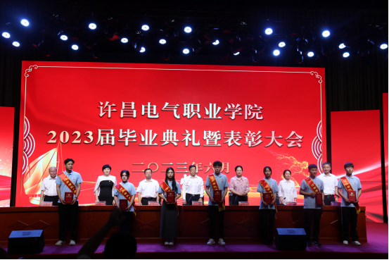 滿池荷花香泮溪,千樹(shù)枝頭累碩果-。6月29日上午,許昌電氣職業(yè)學(xué)院2023屆畢業(yè)典禮暨表彰大會(huì)在西行政樓會(huì)議中心舉行。院黨委書(shū)記彭占亭,黨委副書(shū)記張明慧,工會(huì)主席張貴軍,副院長(zhǎng)商淑敏,紀(jì)委書(shū)記張曉華,副院長(zhǎng)張俊才出席典禮,共同歡送2023屆畢業(yè)生。畢業(yè)典禮由副院長(zhǎng)朱東煜主持。