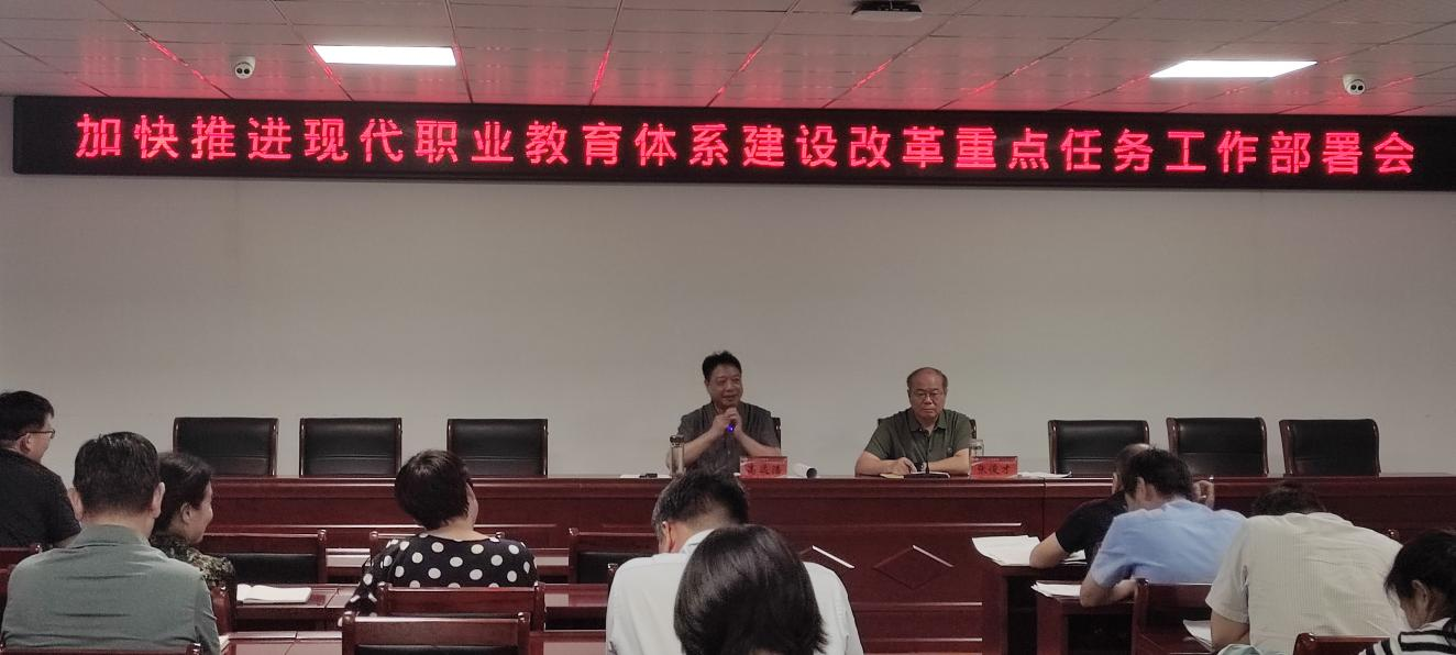 為貫徹落實(shí)《中共中央辦公廳 國(guó)務(wù)院辦公廳關(guān)于深化現(xiàn)代職業(yè)教育體系建設(shè)改革的意見(jiàn)》《教育部辦公廳關(guān)于加快推進(jìn)現(xiàn)代職業(yè)教育體系建設(shè)改革重點(diǎn)任務(wù)的通知》等文件精神,9月6日上午,學(xué)院組織召開(kāi)加快推進(jìn)現(xiàn)代職業(yè)教育體系建設(shè)改革重點(diǎn)任務(wù)工作部署會(huì)。學(xué)院黨委副書(shū)記、院長(zhǎng)高遠(yuǎn)浩出席會(huì)議,教務(wù)處、雙高建設(shè)管理辦公室、科研外事中心、設(shè)備與實(shí)訓(xùn)管理中心、項(xiàng)目管理辦公室、信息化管理中心、校企合作管理辦公室、各系(部)等部門(mén)負(fù)責(zé)人及相關(guān)工作人員參會(huì)。會(huì)議由副院長(zhǎng)張俊才主持。