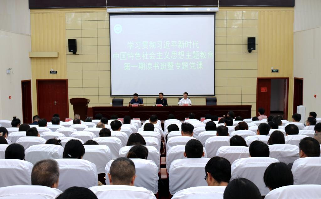 為扎實(shí)開展學(xué)習(xí)貫徹習(xí)近平新時(shí)代中國(guó)特色社會(huì)主義思想主題教育,促進(jìn)全院黨員更加精準(zhǔn)把握主題教育,切實(shí)以教育為帶動(dòng),高質(zhì)量推動(dòng)各項(xiàng)工作落實(shí)落地,9月21日上午,學(xué)院學(xué)習(xí)貫徹習(xí)近平新時(shí)代中國(guó)特色社會(huì)主義思想主題教育讀書班開班,院黨委書記彭占亭講授首場(chǎng)專題黨課。學(xué)院領(lǐng)導(dǎo)班子成員、各單位黨政負(fù)責(zé)人、全體教職工黨員參加會(huì)議。院長(zhǎng)高遠(yuǎn)浩主持會(huì)議。