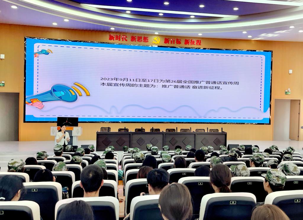 推普周期間,學(xué)院電子屏展示“推廣普通話,奮進(jìn)新征程”、“說好普通話,寫好規(guī)范字”等宣傳標(biāo)語(yǔ),張貼推普宣傳海報(bào),利用公眾號(hào)向?qū)W生宣傳普通話知識(shí)和祖國(guó)燦爛的文化,營(yíng)造推廣普通話、加強(qiáng)語(yǔ)言文字規(guī)范化的學(xué)習(xí)、生活環(huán)境。