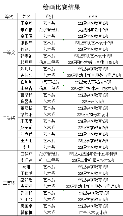 本次大賽共有632名選手參賽報名,最終評選出書法組、繪畫組一、二、三等獎各10名,具體名單如下: