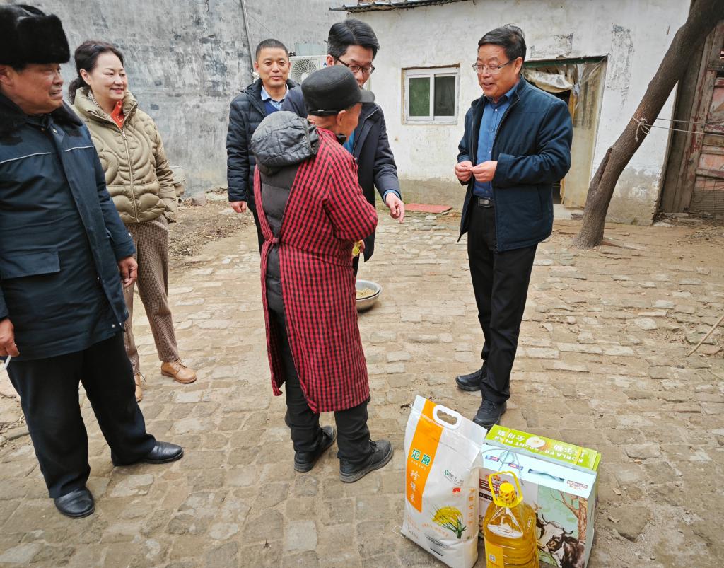 為深入貫徹習(xí)近平總書(shū)記關(guān)于鞏固拓展脫貧攻堅(jiān)成果的重要指示精神,認(rèn)真落實(shí)市委、市政府決策部署,聚焦“守底線、抓發(fā)展、促振興”,踐行為民服務(wù)宗旨,1月30日下午,學(xué)院黨委書(shū)記彭占亭、黨委副書(shū)記張明慧帶領(lǐng)黨辦、院辦、組織部部門(mén)負(fù)責(zé)同志到第一書(shū)記派駐村襄城縣姜莊鄉(xiāng)汪店村開(kāi)展“迎雙節(jié)、送溫暖、固成果”走訪慰問(wèn)活動(dòng),為脫貧戶(hù)、監(jiān)測(cè)對(duì)象送上米面油等慰問(wèn)品,同時(shí)對(duì)汪店村鞏固脫貧攻堅(jiān)成果助推鄉(xiāng)村振興等工作進(jìn)行調(diào)研指導(dǎo)。