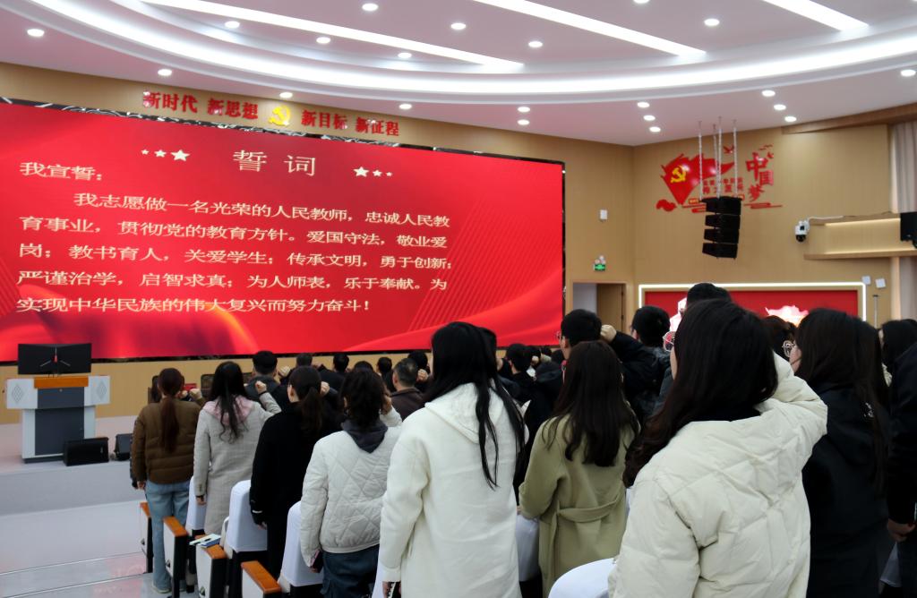 會議期間,黨委副書記張明慧宣讀了新進工作人員錄用文件,對新進教師畢業(yè)院校及所學(xué)專業(yè)進行了逐一介紹,帶領(lǐng)全體參會教職工進行了宣誓;副院長張俊才宣讀了“弘揚踐行教育家精神”活動實施方案及工作要求;青年教師代表韓基偉、新入職教師代表杜彤彤進行了交流發(fā)言。