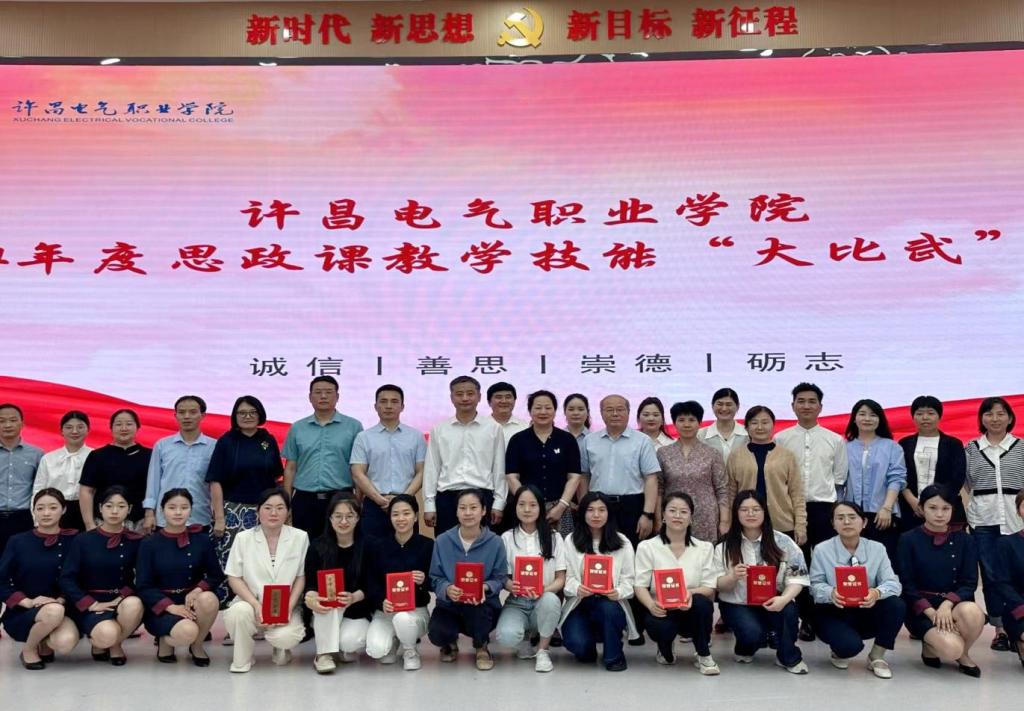 根據(jù)中共河南省委宣傳部、中共河南省委教育工委 河南省教育廳《關(guān)于開(kāi)展 2024年度全省學(xué)校思想政治理論課教學(xué)技能“大練兵、大比武、大展示”活動(dòng)的通知》(豫教工委〔2024〕79號(hào))精神,5月8日-9日上午,學(xué)院在思政VR實(shí)訓(xùn)中心舉辦了許昌電氣職業(yè)學(xué)院2024年度思想政治理論課教學(xué)技能“大比武”活動(dòng)。院黨委副書(shū)記張明慧,副院長(zhǎng)朱東煜、張俊才出席活動(dòng)。黨委委員、宣傳部部長(zhǎng)張國(guó)棟,黨委辦公室主任楊繼奎,人事處處長(zhǎng)李保茹,學(xué)生處處長(zhǎng)楊紅培,機(jī)電工程系黨總支書(shū)記劉建剛,公共教學(xué)部黨總支書(shū)記郭雯,人事處副處長(zhǎng)龔曉東,心理咨詢(xún)中心主任趙娟娟擔(dān)任大賽評(píng)委。