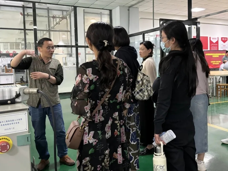 隨后,各教研室主任及骨干教師參觀了機(jī)電工程系工業(yè)機(jī)器人實訓(xùn)室。他們紛紛表示,通過這次活動,對該系學(xué)情有了充分了解,對專業(yè)課教學(xué)的方向和目標(biāo)有了明確認(rèn)識。在今后的教學(xué)工作中,一定因材施教,通過與專業(yè)課教師交流,更有指向性、目的性地制定教學(xué)方案、授課計劃和課程標(biāo)準(zhǔn),對標(biāo)學(xué)生專業(yè)和職業(yè)教育,為學(xué)生的全方位發(fā)展打下堅實基礎(chǔ)。